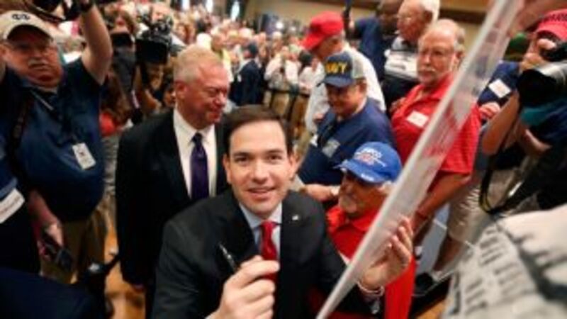 At a campaign event on Sunday, a man stood up in the middle of Marco Rubio’s stump speech to make an announcement: “Marco Rubio is trying to steal my girlfriend.”
