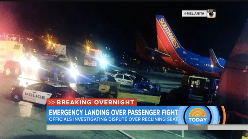 According to reports, a Southwest flight from Los Angeles to San Francisco was delayed for close to three hours Sunday night when an argument over legroom turned violent. Via NBC: