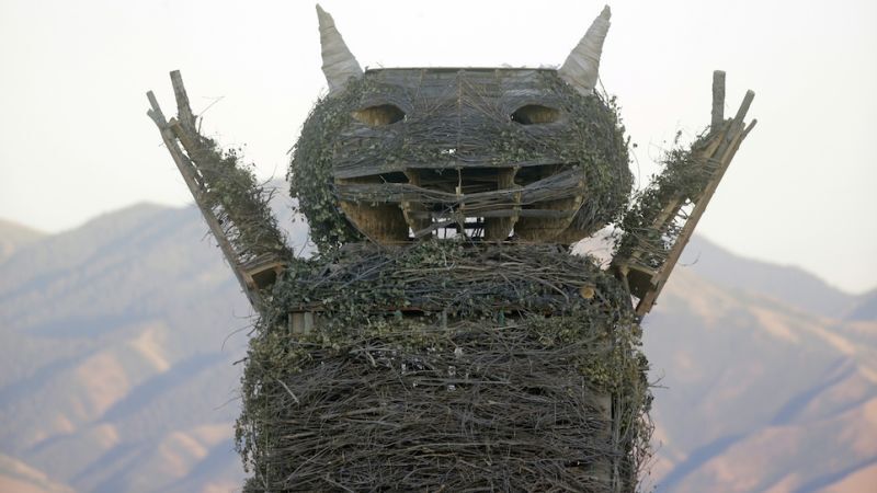 Grantsville police Lt. Steve Barrett said the man had told some of the estimated 1,200 attendees in advance about his plans to run into the fire. The three-story-tall effigy, modeled on a character from the classic picture book "Where The Wild Things Are," had been burning for about 30 minutes and was fully engulfed when the man crossed a safety perimeter about 50 feet from the structure and jumped in, officials said.