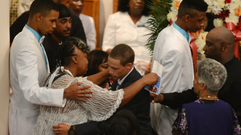 [Photo of Orta hugging Garner's mother at Garner's funeral via AP]