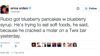 After coming in a depressing fifth place in the New Hampshire primary this week, Marco Rubio is coming undone. Just look at him.