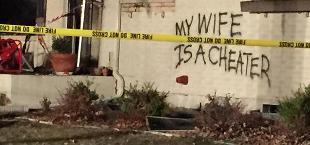 Marriage, and House With "My Wife Is A Cheater" Tagged On Side, Explodes