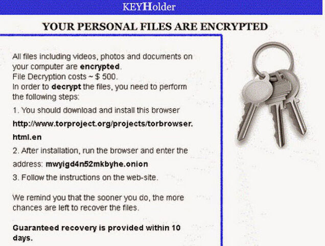 “Your personal files are encrypted,” it read. “File decryption costs ~ $500.”