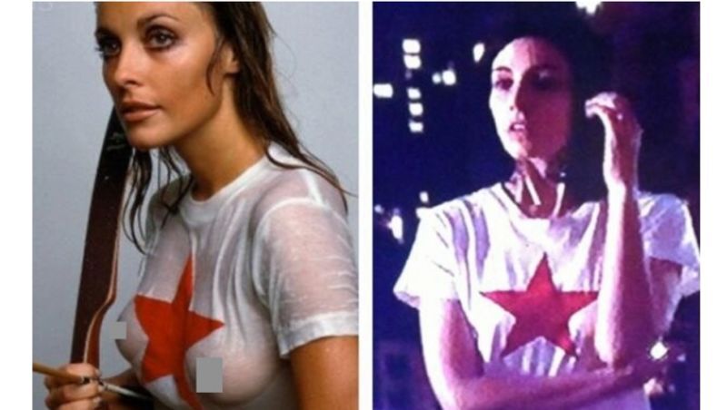 Yes, Sharon Tate wore that T-shirt, but that was just my costume designer Janie Bryant and I solving an argument. Women's T-shirts had not come into fashion. I always wanted Megan in a Disneyland T-shirt and Janie kept saying, 'They're not around yet.' So I said, 'There's got to be a women's T-shirt,' and Janie brought [the photo of Tate] in and asked, 'Is this OK?' And I said, 'Yes. I want that exact T-shirt.' Little did I know ...