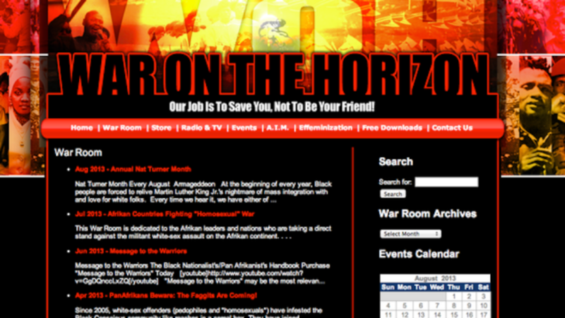 On Wednesday, the Southern Poverty Law Center published a report about Kimathi, who goes by the name "Irritated Genie" online, describing him as “a gay-bashing, revenge-seeking black nationalist who advocates on his website – War on the Horizon – the mass murder of whites and the 'ethnic cleansing' of 'black-skinned Uncle Tom race traitors.' "