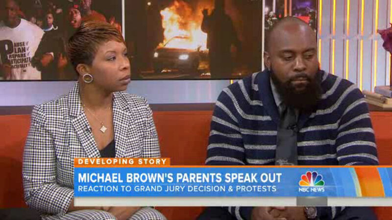 Michael Brown's parents—Lesley McSpadden and Michael Brown, Sr.—were on the Today show this morning, where they responded to Ferguson, Mo. police officer Darren Wilson's public comments following a grand jury's decision not to indict him for the killing of their son.