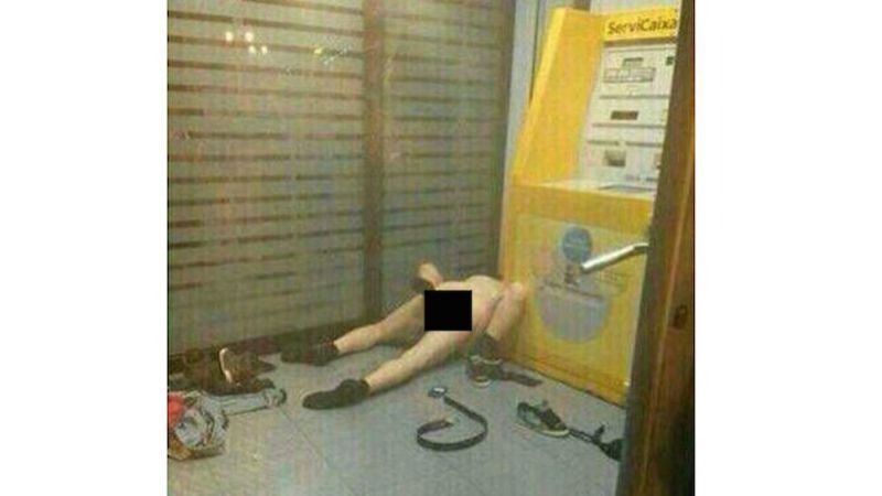 A Spanish couple was busted in flagranti next to a cash machine in Oviedo this week, but not before a large cheering crowd gathered outside the bank.