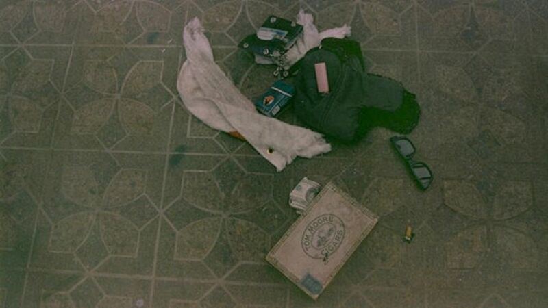 One was an image showing a box containing a spoon and what appear to be needles on the floor next to a cigarette and sunglasses. The other showed the paraphernalia box closed, next to cash and a wallet that appears to show Cobain's identification.