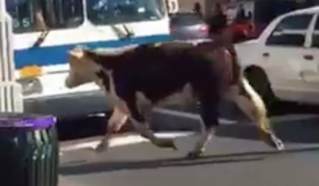 Yesterday, a cow named Freddie briefly held New York City’s attention when he burst forth from the Queens slaughterhouse where he was being held and led police on a chase down Jamaica Avenue. This morning, Freddie was being taken to an animal sanctuary, where he will settle down, enjoy the fresh air and green grass, and live out his years in peace and quiet away from the city.