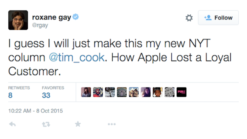 Roxane Gay, accomplished Twitter user and author, has not received her iPhone yet. Rather than settle this in private, she chose to publicly chastise Apple before her 89,000 followers about her missing phone. She also threatened to use the New York Times to settle the score. But it was just a joke!