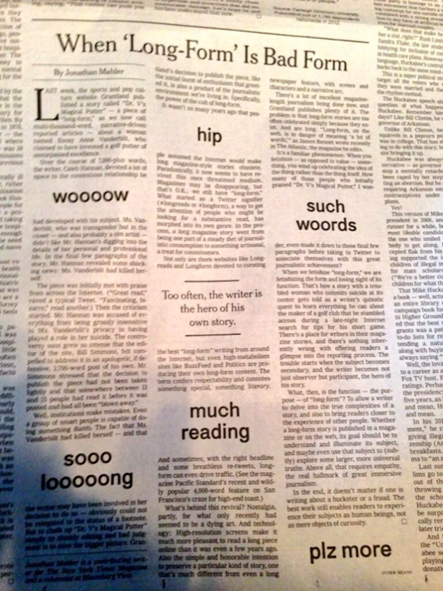 New York Times Publishes DogeJordan Sargent1/25/14 11:34amFiled to: wow10911EditPromoteDismissUndismissHideShare to KinjaToggle Conversation toolsGo to permalink All the Memes That Are Fit to Print (Months After Relevance).[photo via Caitlin Kelly]Reply109 repliesLeave a reply