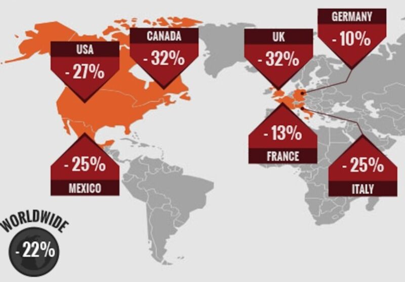 Thanksgiving Day saw a 29 percent drop in the US.