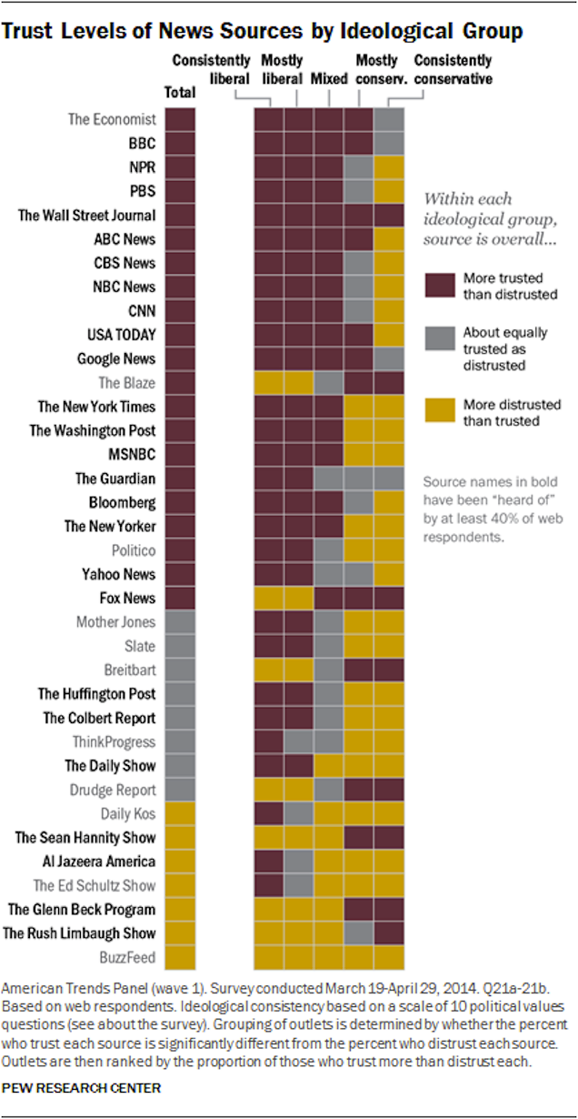 Here is something that Democrats and Republicans agree on, besides the fact that Ebola is coming and we are all going to die: According to a new poll of political polarization and media habits of regular folk by the Pew Research Center, BuzzFeed is the least trusted news source in media, behind the Rush Limbaugh Show.
