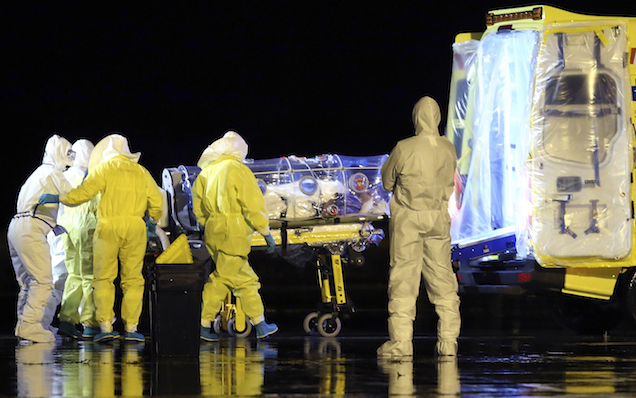 [Image of Manuel Garcia Viejo's transfer from Sierra Leone via AP]