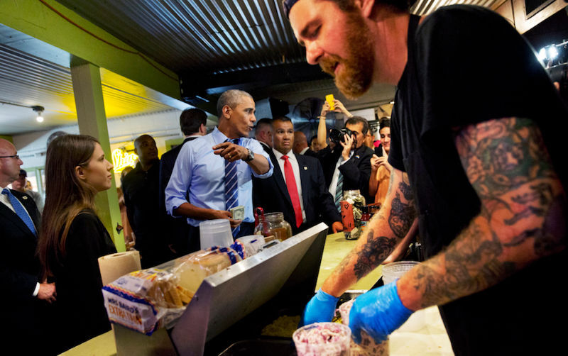 At yet another public appearance on his tour of Colorado and Texas, President Obama fist bumped a BBQ cashier in response to the cashier's quip about gay rights. "It was just a lucky day to be the register girl," cashier Daniel Rugg Webb told The Austin Chronicle later.