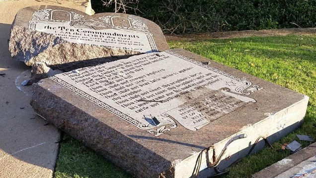 While most devil worshipers express their allegiance to Old Scratch with Slayer tapes and questionable facial hair, one of Satan's little helpers took a more direct approach Thursday night, plowing his car through the Oklahoma statehouse's controversial Ten Commandments monument.