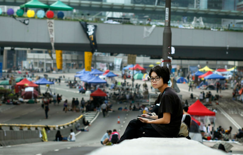The pro-democracy sit-ins that have been ongoing near Hong Kong's government center for almost two weeks are intended as a means to "peacefully protest China's restrictions on the first-ever direct election for Hong Kong's leader, promised by Beijing for 2017," the AP reports.