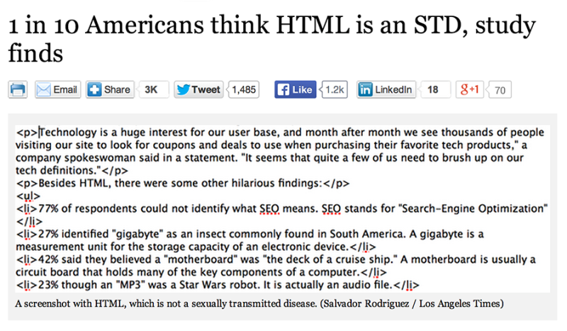 On the positive side, this means 10 out of 10 Americans think contact with HTML will prevent you from ever getting laid again.