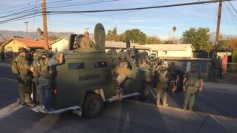 Following up on tips, the chief said, led investigators to a home in Redlands, from which a suspicious vehicle was seen leaving. That led to a police chase back to San Bernadino, where the suspect vehicle was stopped and there was an officer-involved shooting.