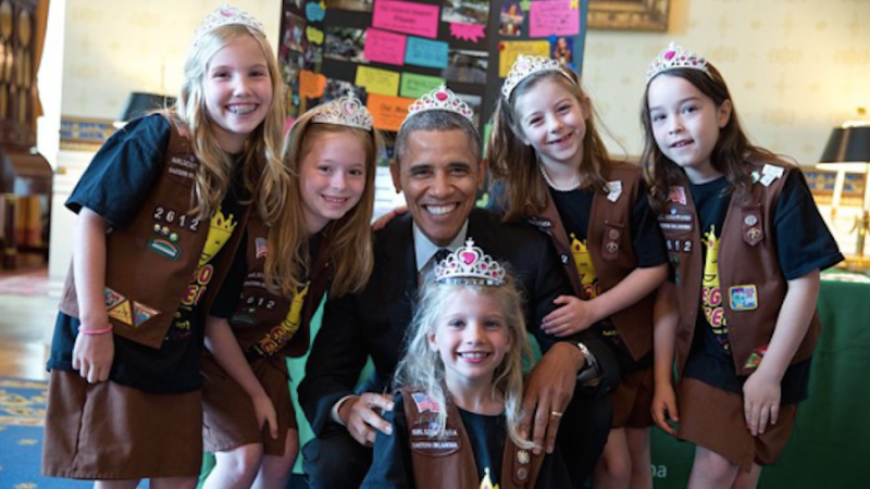 Seems our nation's fair leader—who once refused to don a custom-fit Navy football helmet, claiming it was "unpresidential" to place items atop his executive noggin—is powerless when it comes to negotiating with cute little girls.