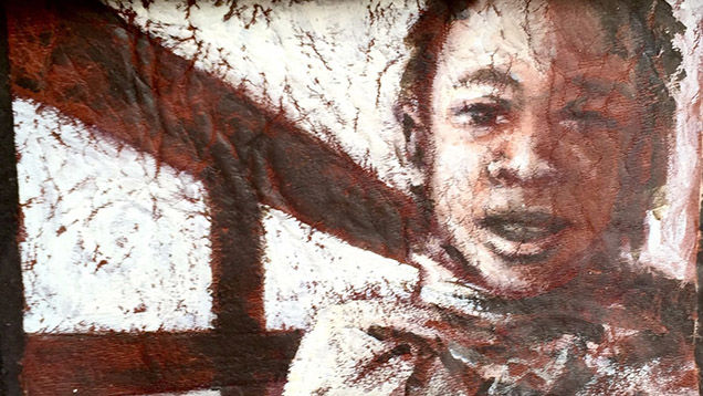 The two pieces are thematically and aesthetically similar. One is of an older black man; the other is of a young black boy, Both pieces are done in charcoal on elk hide, “bridging Rachel’s youth spent hunting elk in Montana with her deep involvement in the black civil rights movement,” according to the seller’s description. Uh huh.