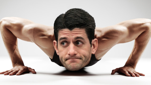 Paul Ryan’s “daily gym workout is from 6:30 am to 8 am: P90X, yoga, crossfit, cycling/spin.” Every fitness nightmare made flesh. Appropriate.