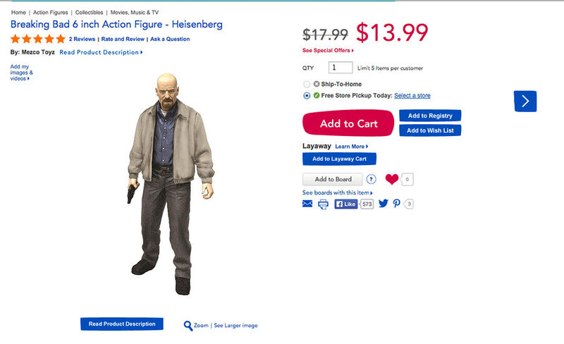 Toys R Us is well known around the world for their vast selection of toys for children of all ages. However their decision to sell a Breaking Bad doll, complete with a detachable sack of cash and a bag of meth, alongside children's toys is a dangerous deviation from their family friendly values. That's why I'm calling on Toys R Us to immediately stop selling the Breaking Bad doll collection in their stores and on their website.