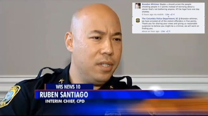 Columbia may be both the largest city in South Carolina and its capital, but that doesn't mean the city's interim police chief has anything better to do than threaten to hunt down and arrest citizens who post complaints on his department's Facebook page.