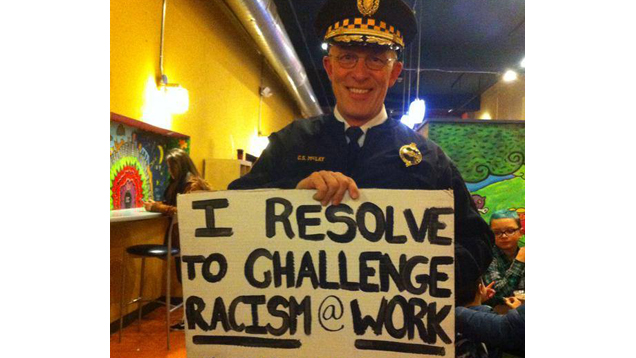 On Friday, a police union president sent a blistering email to Pittsburgh's Chief of Police, writing, among other things, "your actions raise serious concerns" and "enough is enough!" The top cop's transgression? Being photographed with a sign reading "I resolve to challenge racism at work" and "#endwhitesilence."