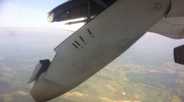 The above photo comes from Cole Morton, a reporter at London's Daily Telegraph, who was aboard a CityJet flight to Florence yesterday when passengers heard a "bang" and saw what you see above. According to Morton, the passengers were startled by the noise but the plane made a safe landing shortly after.