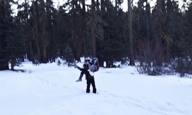 Then again, we don't know the context for this fond vacation memory from Tahoe. Maybe it was an emergency. Maybe her foot was bleeding again. Maybe she staged this photo to make fun of the rumors and is just joshy-woshing with us. Maybe Ariana Grande is not an actual adult baby.