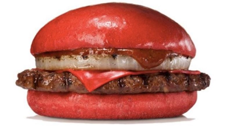 Last year, Burger King Japan brought back its bizarre Kuro Burger—a black burger with black sauce and black cheese—for the third year in a row. I ate it, and it tasted slightly better than it looked (not saying much). The Kuro Burger is coming back again this year, but BK Japan is also trying out a new freakshow sandwich: The AKA (Red) Samurai burger, featuring a blood-red bun and cheese, and red ANGRY sauce.