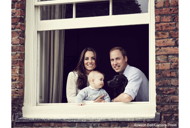 Imagine, if you will, the morning of the portrait session: Prince George fresh from the bath, swaddled in a towel, giggling and cooing as he studies his face in a mirror. ("MIRROR," reads a card taped to the gilded frame.) Prince William grabs the shirtless infant by his tummy and holds him aloft. "What the bloody hell is this thing?"