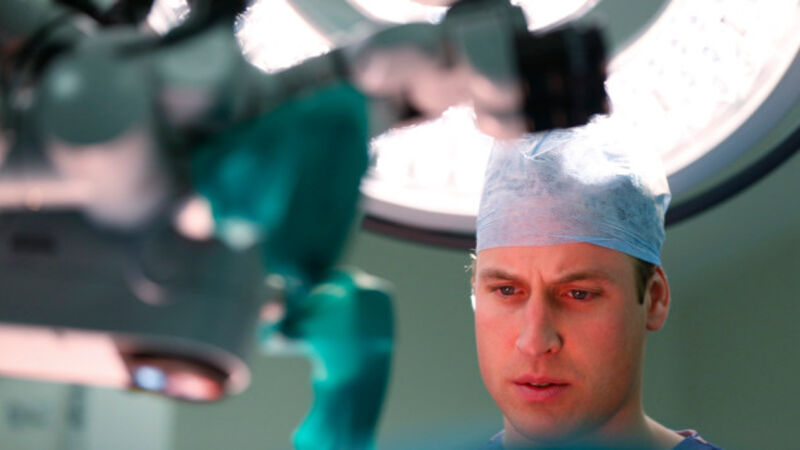 [Prince William, observes breast reconstruction surgery on a female patient during a visit at the Royal Marsden hospital in Chelsea. Image by Lefteris Pitarakis via AP]
