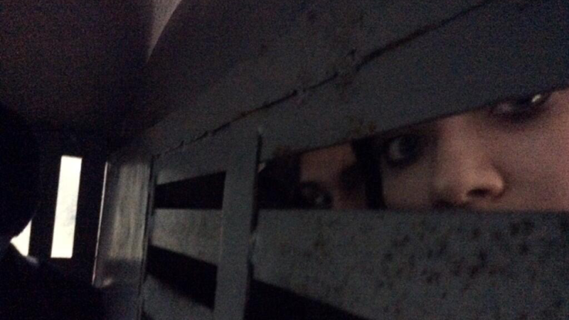 This is Pussy Riot's two most famous members—tweeting a selfie from the back of a police wagon in Sochi.