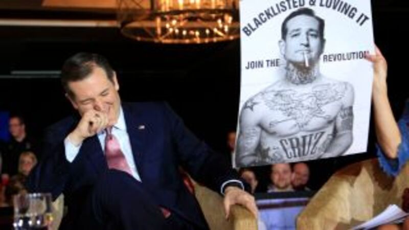 Republican presidential candidate Ted Cruz, seen above guffawing at a rendering of himself as a prison inmate, is slowly becoming his party’s last hope. The New York Times reported on a recent fundraiser for the Cruz camp held at the Knickerbocker Club, one of the New York’s most elite establishments.