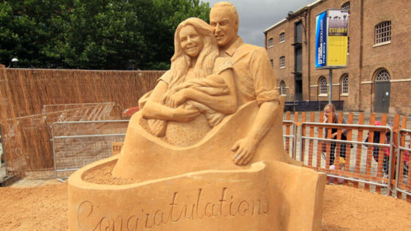 Today's frightening depiction of the Cambridge family comes in the form of 15 tons of cheese-colored sand. It was unleashed upon the world as part of the Brighton Sand Sculpture Festival and took five days to carve. It depicts Prince William as a 60-year-old sex predator rubbing himself into the backside of his leering beach-witch wife. At the crone's breast, she holds a babe—presumably the antichrist. Below the waist, the figures fuse into a single family member.