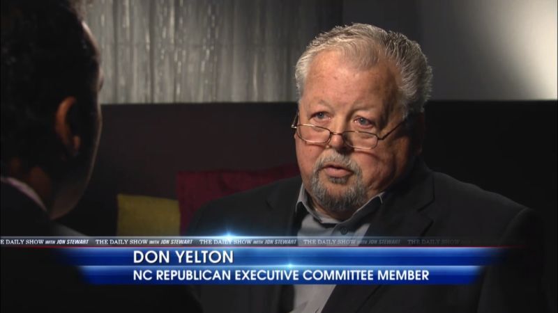 The North Carolina Republican party distanced itself from now-former official Don Yelton after the latter made several overtly racist remarks during a Daily Show segment on the state's controversial voter ID law.
