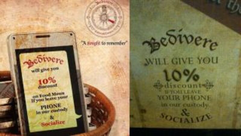 "Bedivere will give you 10% discount if you leave your phone in our custody & socialize," reads a sign that went viral last week on social websites.