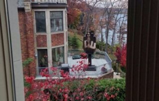 He then went a step further and purchased an expensive bronze statue of a middle finger, which he placed on the back porch and aimed at his ex-wife's house.