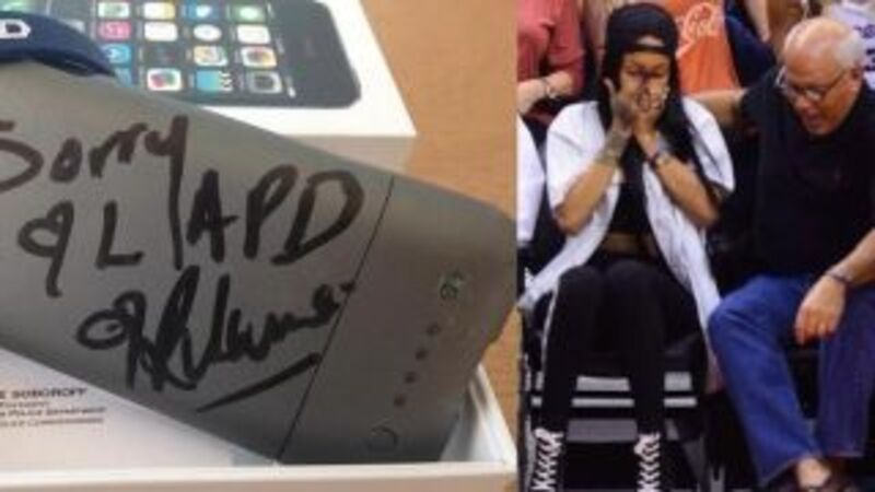 The singer dropped L.A. Police Commission President Steve Soboroff's phone while posing for a selfie at Friday night's Clippers game, cracking the screen. When Rihanna saw Soboroff at the next game Sunday night, he asked her to sign the busted phone so it could be auctioned for a Los Angeles Police Foundation fundraiser. It's now on eBay, with a top bid of more than $55,000. (Hey, it comes with a charger.)