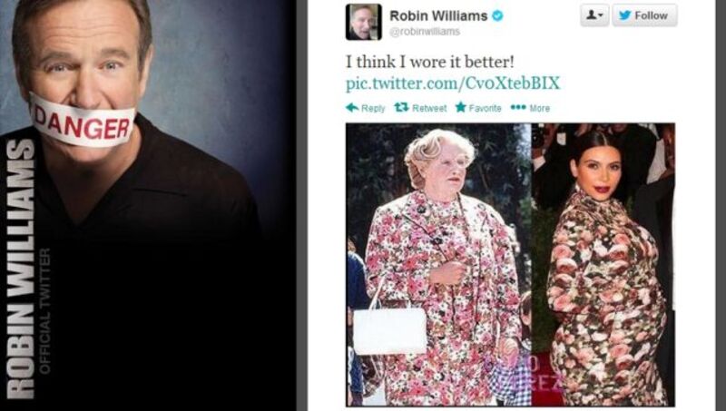 But the best shots of all were fired by veteran funny person Robin Williams, who tweeted a photo comparing Kim K to himself as Mrs. Doubtfire.