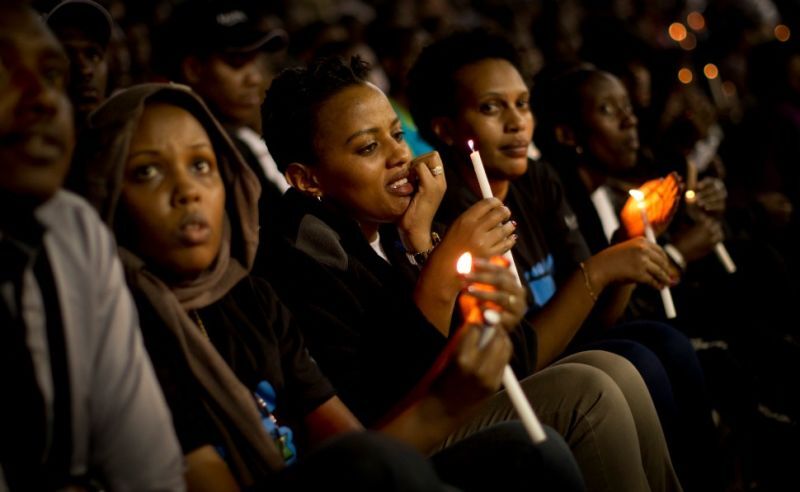 Rwandans light candles of remembrance and listen to religious speeches and music at a ceremony in Kigali, Rwanda, on Monday. Thousands of Rwandans packed the country's main sports stadium to mark the 20th anniversary of the beginning of a devastating 100-day genocide. Image via Ben Curtis/AP.