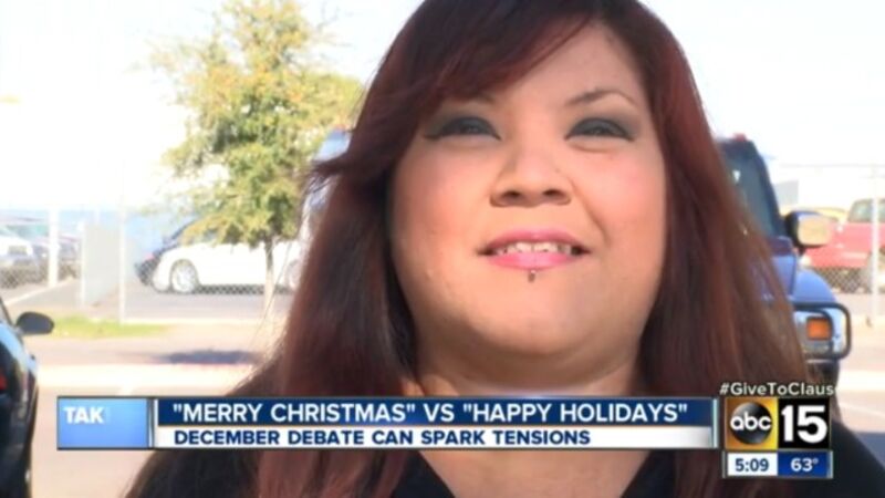 Kristina Vindiola, a bell ringer for the Christian charity, was collecting donations outside a Walmart in Phoenix, when she greeted a shopper with the words "happy holidays."