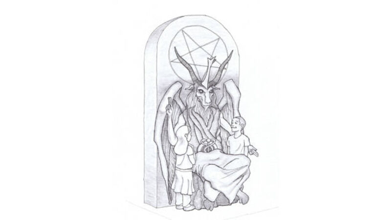 A New York-based Satanic church has applied to put up a statue of a Baphometic idol in the Oklahoma state capitol next to an already erected Ten Commandments monument. "The monument has been designed to reflect the views of Satanists in Oklahoma City and beyond," Satantic Temple spokesman Lucien Greaves told the Associated Press. Also, the statue is functional, serving as "a chair where people of all ages may sit on the lap of Satan for inspiration and contemplation."