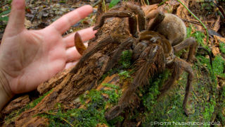 Our eventual cession of global dominance to giant spiders came one step closer this month when a scientist detailed his encounter with a spider that weighs roughly as much as a puppy. The South American Goliath birdeater (real name!) has a footlong legspan and two-inch fangs. Its body is about the size of a fist and it is the largest spider in the world—that we know of.