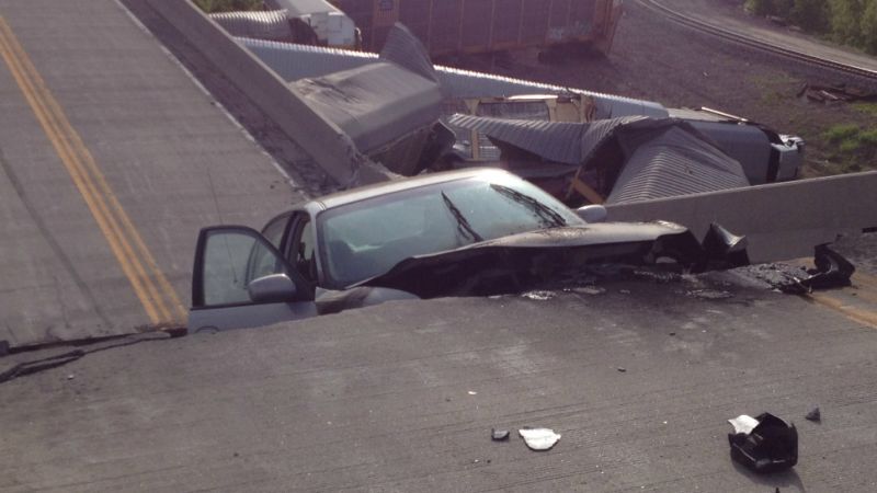 "I heard the crash and stepped outside, and my son said the overpass was down," Wayne Woods, who lives near the crash, told KFVS. "Then we heard car's tires squealing like it was coming to a stop and a crash, and a horn continuously blowing. At that time, we were on the phone with 911 and trying to get out and block the traffic so no one else would go down into it."