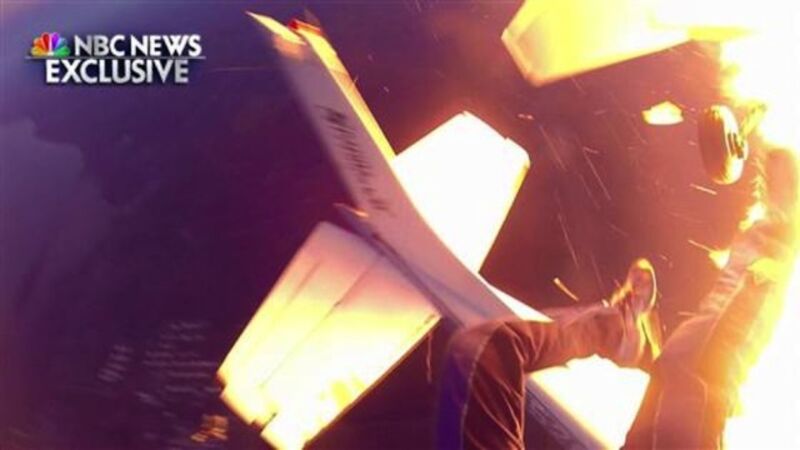 This weekend, two planes full of skydivers collided at 12,000 feet, causing one plane to explode and the other to crash land. Amazingly, both pilots and all nine skydivers survived. Last night, NBC News released spectacular footage of the crash taken from the skydivers' helmet-cam videos.