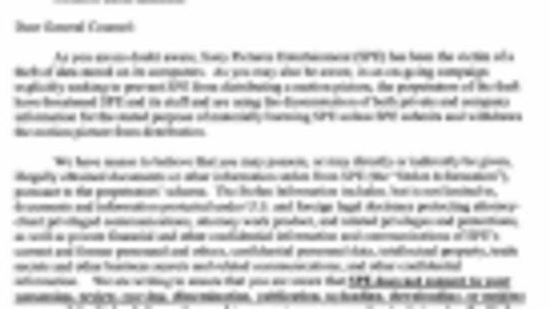 The following menacing letter was sent to outlets including the New York Times and Hollywood Reporter, demanding that they destroy all traces of the leaked data or face legal consequences: