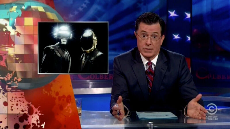 To make up for the robots' absence, Colbert danced to "Get Lucky" with various celebs and then had Robin Thicke on to perform "Blurred Lines," a song whose ubiquity has way exceeded that of "Get Lucky." Colbert got the song of the summer after all.